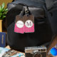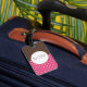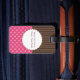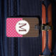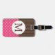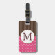 Étiquette À Bagage Monogramme rose et Brown de rayures de pois