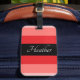 Marque moderne à bagages rayés rose et noir. Personnalisez la balise avec votre nom ou votre initiale. Le style de police et la couleur peuvent être customisés à votre style personnel.