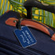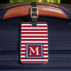 Étiquette À Bagage Monogramme rouge de rayures blanches et bleues