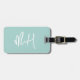 Étiquette À Bagage Monogramme Script minimal Aqua Vacances vertes