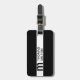 Élégante étiquette de bagage gris personnalisable avec cadre blanc sur le côté arrière et monogramme gras.