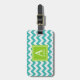 Étiquette À Bagage Monogramme Turquoise et Lime Chevron Imprimer