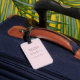 Motif à chaîne vierge sur un arrière - plan bleu clair avec monogramme vertical personnalisé dans une police sans serif. Le verso contient des informations personnelles dans une police sans serif minimaliste sur un arrière - plan léger. Consultez notre magasin pour plus d'options d'étiquette de bagages.