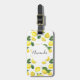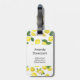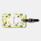 Une étiquette à bagages avec un mignon motif de citrons jaunes avec des feuilles verts et des tranches de citron fraîchement coupées.
