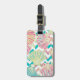 Cette étiquette à bagages élégante présente une fausse parties scintillant, des coquillages colorés dans de multiples couleurs de turquoise, rose corail, aqua, et or. Les coquilles sont placées sur des rayures de chevrons bleu aqua qui contiennent également des images du motif de coquille, et celles-ci sont contrastées avec des rayures de chevrons blancs. Le dos de la balise a le même motif de coquillage, mais avec un bloc turquoise solide correspondant à la fin qui contient votre texte personnalisé en blanc. Vous pouvez utiliser les lignes de texte pour placer vos informations préférées à la place de l'exemple. Joli !
