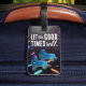Éclairé par l'énergie rétro, ce design présente des arrosages de néon sur fond de lumière noire, inspirés des patinoires et des boîtes de nuit. Faux patins de parties scintillant et une citation—"Laissez rouler les bons moments"—apporter le plaisir, la nostalgie, et l'air. Parfait pour les amateurs de roller derby, les amateurs de vie nocturne et les enfants des années 80/90. Le verso inclut le texte modifiable pour vos informations. Faites un tour dans votre prochain voyage avec style - personnalisez votre équipement de bon temps maintenant!