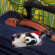 Mignonne Bernedoodle portant un chapeau de Père Noël.