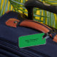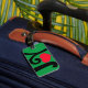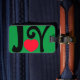 Celui d'une étiquette aimable de bagage pour votre voyage de vacances avec un texte décoratif de "joie" utilisant l'o comme coeur rouge sur un fond de vert de Noël. Une manière de préfet de partager la joie. Préparez pour être customisé avec votre nom et numéro de téléphone sur le dos.