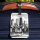 Balise bagage avec le skyline de Chicago. Texte personnalisé à l'avant de la balise. Conservez le texte "Chicago" ou changez le nom, le texte ou la phrase que vous désirez. Couleurs modernes noir et blanc. Chicago, Illinois skyline est en première ligne. Utilisez le modèle pour créer votre propre étiquette de bagage Chicago.