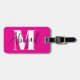 Étiquette À Bagage Noir et blanc Monogramme moderne rose chaud