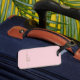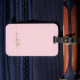 Étiquette de bagage personnalisée avec nom de monogramme doré élégant moderne chic. Ce design délicat présente un nom personnalisé dans une police calligraphique à queue cursive (ou typographie) en or sur fond rose blush ou rose bébé. Ceux-ci sont faciles à personnaliser. Cadeau féminin élégant pour mariage, anniversaire 16 ans, enterrement de vie de jeune fille, remise de diplôme, et pour quiconque aime le style glamour.