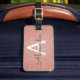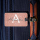 Étiquette de bagage à monogramme scintillant en or rose avec initiales. Cette étiquette de bagage est parfaite pour la rentrée scolaire, le travail ou les voyages. L'étiquette de bagage rose pâle est également un excellent cadeau pour les mariages, les anniversaires, les enterrements de vie de jeune fille ou les lunes de miel. Veuillez contacter le concepteur pour des articles assortis personnalisés.