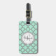 Étiquette À Bagage Nom du monogramme de Quatrefoil vert et gris