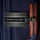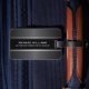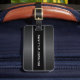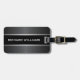 Une étiquette à bagages élégante avec votre nom en blanc sur un arrière - plan noir avec des bordures en dégradé gris foncé haut et bas. Adresse à l'arrière.