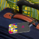 Numéro de bagage minimaliste abstrait géométrique fuchsia bleu jaune nom. Pour maman, fille et grand-mère.