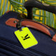 Monogramme initial et aussi des détails personnels comme nom, adresse, numéro de téléphone et e-mail que vous pouvez modifier. Conçu avec un beau arrière - plan de couleur jaune néon solide, vous pouvez changer la couleur si vous le souhaitez. Idée cadeau de voyage cool pour lui ou elle.
