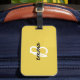 Nom personnalisé tendance et marque de bagage de style monogramme initial dans la typographie de script minimaliste moderne en noir et blanc sur un simple arrière - plan amusant jaune moutarde. Le nom et l'initiale peuvent facilement être personnalisés avec votre propre nom ou le nom d'un être cher pour un cadeau parfait pour un ami ou un proche!