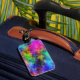 Un design artistique abstrait qui crée des nuages colorés d'arc-en-ciel dans le ciel.
