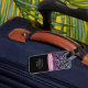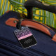 Élégante et féminine étiquette à bagages avec rose noué bowon luxe noir ombre parties scintillant zebra arrière - plan.