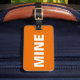 Cette étiquette orange et drôle de bagage dit tout! Il dit "le mien" à l'avant haut et clair en blanc contre le arrière - plan orange. Vous pouvez facilement personnaliser le dos de cette drôle de étiquette de bagages avec vos détails nécessaires.