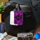 Les frondes de palmier violet tropicale sur le noir, ces étiquettes de bagage présentent votre monogramme en lettres violet chic sur le devant et une fente de carte sur le dos pour une identification facile. Créez-vous pour vous-même ou offrez-en un cadeau.