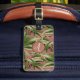 Cette étiquette Vintage de bagages Palms Tropical a une belle peinture vintage d'aquarelle botanique d'un palmier tropical Cordyline vs. Princes Margaret fait en un motif reproductible avec un rose de lin rose texturé arrière - plan dans les couleurs crème, rose rose et vert. Rendre ce motif plus grand ou plus petit ou le faire pivoter selon vos préférences. Personnalisez-le en ajoutant un étiquette de forme et une initiale dans les couleurs suivantes pour correspondre au motif : Crème : #e5dfa5 Vert :#3d4e18 Rose Rose :#b67469