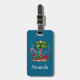 Une étiquette de bagage avec une image de vacances saisonnière. Un palmier tropical orné de lumières festives surmonté d'une étoile. Un sucre de canne géant rouge et blanc qui sort du sable. Cadeaux de Noël sous l'arbre. Whimsical et amusant.