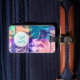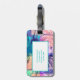 Une étiquette à bagages design présente votre monogramme initial sur un collage de palmiers tropicaux turquoise, bleu, violet, orange et rose à l'avant et vos coordonnées imprimées à l'arrière OU choisissez le style que vous pouvez insérer votre carte de visite à l'arrière. Créez-vous pour vous-même ou offrez-en un cadeau. Sac à tiroirs MATCHING et plus d'articles dans notre collection de voyages.