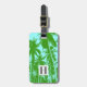 Palm Tree Design avec Monogramme. Vert et bleu. Motif de feuille, palmiers tropicaux.