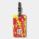 Palm Tree Design avec Monogramme. Rouge et jaune. Motif de feuille, palmiers tropicaux.