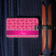 Motif rose moderne, chic et à la mode de teckel avec des coeurs et des pattes de chien et rayure rose bling de diamants (diamants non vrais) avec de jolis coeurs et points personnalisés avec vos cadeaux nommés ou cadeaux de monogramme ou vos initiales. Idées Girly de cadeau de chien pour des propriétaires et des amoureux de les chiens d'animal familier. Si vous frappez la personnaliser il bouton vous pouvez changer la couleur et le type de police.