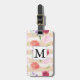 Étiquette À Bagage Peach rose Aquarelle Fleurs et rayures Monogramme