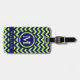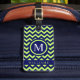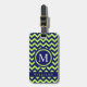 Étiquette À Bagage Personnalisé Bright Lime Green Navy Blue Chevron M