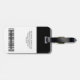 Personnalisez facilement cette étiquette de bagage personnalisée avec photo, code de la barre d'analyse et logo de l'entreprise. Un design d'entreprise simple en noir et blanc entièrement personnalisable en tailles avant et arrière, sans-serif polices de base et moderne et un look professionnel et clair. Idéal pour les employés Gadgets de voyage d'affaires, Accessoires de voyage pour professionnels, étiquettes d'ID bagage de sécurité de voyage de l'entreprise, gadgets de patron pour les voyages d'affaires. L'étiquette de bagage est disponible en impression recto verso, ou en face simple avec emplacement de carte. Pas de commande minimum.
