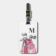 This cute golf bag or luggage tag features just the top of a light pink watercolor golf bag with clubs showing on the front, with the name elegantly curved above in a classic serif font for a personalized touch. A single initial monogram appears in the top right of the front for an extra personalized detail. The soft watercolor style and playful pink tones keep the design charming and modern.