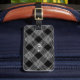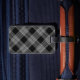 Marque de bagage en diagonale noire et blanche avec initiale monogrammée.
