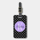 Étiquette À Bagage Point de polka noir avec le monogramme lilas