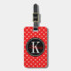 Étiquette À Bagage Point Polka rouge avec Monogramme noir