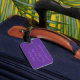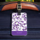 Cette étiquette de bagage comporte une conception de pois, dans diverses nuances de pourpre, et une rayure pourpre audacieuse. La rayure, et la couleur d'arrière - plan sur le dos, aussi bien que le monogramme et le texte, peuvent tout être customisées comme désirées.