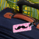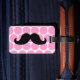 ÉTIQUETTE ÉLÉGANTE, DRÔLE, RÉTRO DE BAGAGE DE MOUSTACHE. MOUSTACHE NOIRE AVEC LE MOTIF DE POINT ROSE ET BLANC DE POLKA. "JE MOUSTACHE VOUS POUR RENVOYER MON BAGAGE". Cadeau d'amusement de MOVIEFUN© A pour elle. Pour d'autres couleurs de motif de pois de moustache ou d'arrière - plan contactez svp le concepteur.