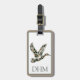 This fun monogrammed luggage tag features a flying mallard duck in camouflage print of brown and dark green. Personalize the monogram on the front with your choice of initials and your special text on the back. Perfect for personalized gift bags and party favors.