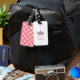 Étiquette blanche de bagage avec un nom de couronne de princesse et de votre enfant dans la calligraphie rose. Le dos comporte un motif rose et blanc des couronnes de princesse.