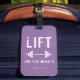 Une idée de cadeau amusant pour vos amis passionnés de fitness. La balise de bagage violet présente une typographie blanche en détresse avec la citation, Lift Like You Mean It. Personnalisez avec votre nom.