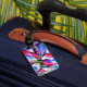 avec un design original de la peinture aquarelle de l'artiste Sacha Grossel de fleurs azalées lumineuses, colorées et multicolores. Cette décoration florale offre une vue rapprochée et macro de ces fleurs de jardin communes aux tons rouges, bleus et violets, donnant une impression abstraite et surréaliste à ce design d'inspiration botanique. Cette étiquette à bagages peut être customisée au dos pour inclure vos données personnelles.