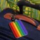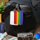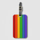 Cette étiquette à bagages comporte des bandes arc-en-ciel.