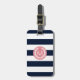 Étiquette À Bagage Rayure de bleu marine avec le monogramme rose de