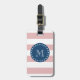 Étiquette À Bagage Rayures blanches roses motif, monogramme de bleu