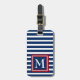 Étiquette À Bagage Rayures bleues et blanches avec le monogramme