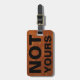 Étiquette drôle de bagage avec l'arrière - plan du grain en bois de faux. Audacieux toute la police noire capitale sur l'avant lit PAS LE VÔTRE. Pour le secteur agité de retrait des bagages de l'aéroport. Le dos a la même image et indique la PREUVE : au-dessus du modèle fait sur commande des textes pour ajouter le numéro de nom et de téléphone ou toute autre information de contact en cas de bagage perdu pendant le voyage de vacances ou d'affaires. Cadeau rustique fait sur commande drôle d'étiquette de bagage pour lui. Ou elle !