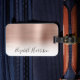 Élégante étiquette monogrammed avec un arrière - plan en or rose brossé à l'ombre. Personnalisez avec votre nom dans un script contemporain.